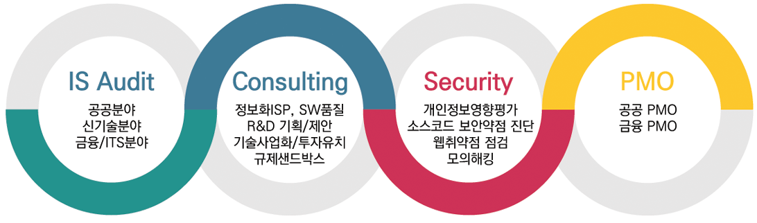정보화ISP, SW품질, R&D기획과 제안, 기술사업화와 투자유치, 공공/금융부문 PMO 등 IT 전문 기술을 기반으로 쌓아온 경험 기반으로 컨설팅을 수행합니다.